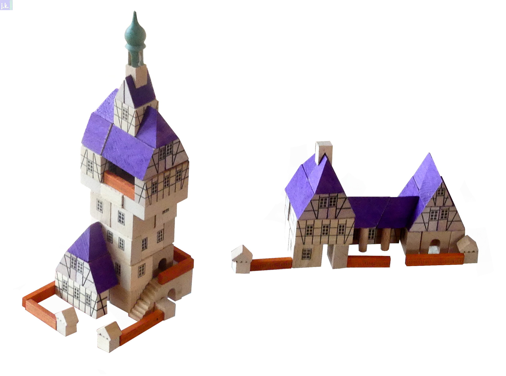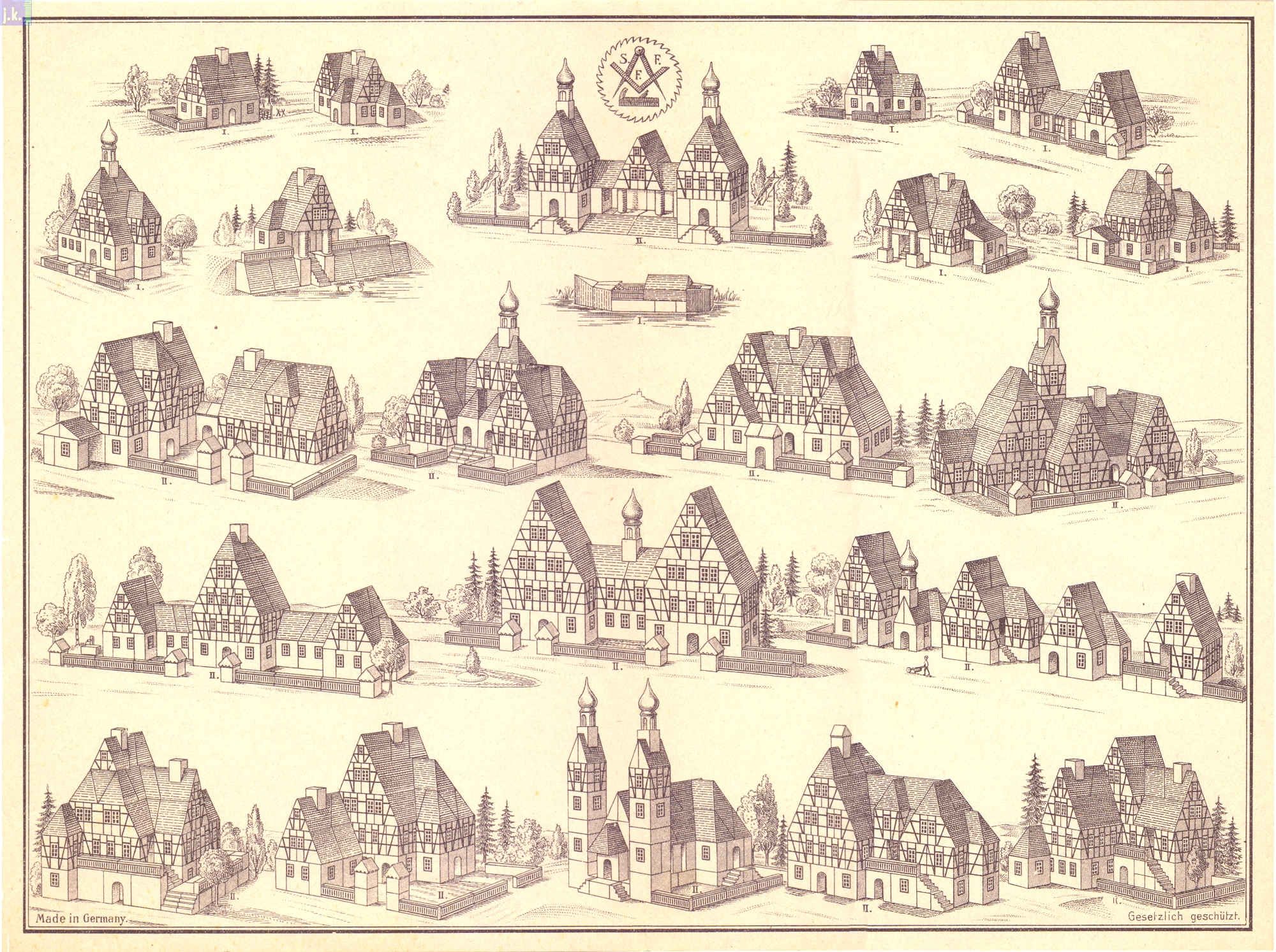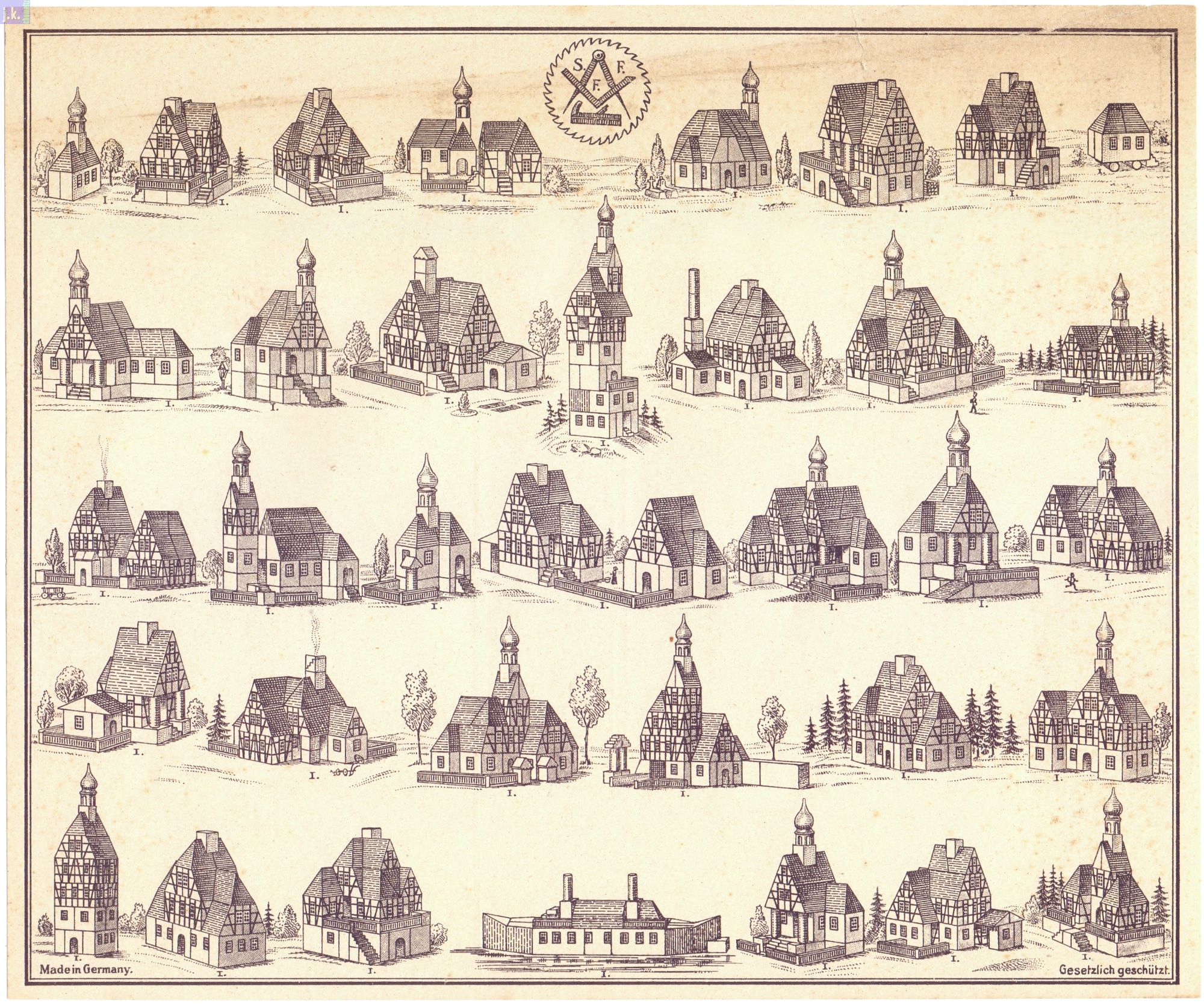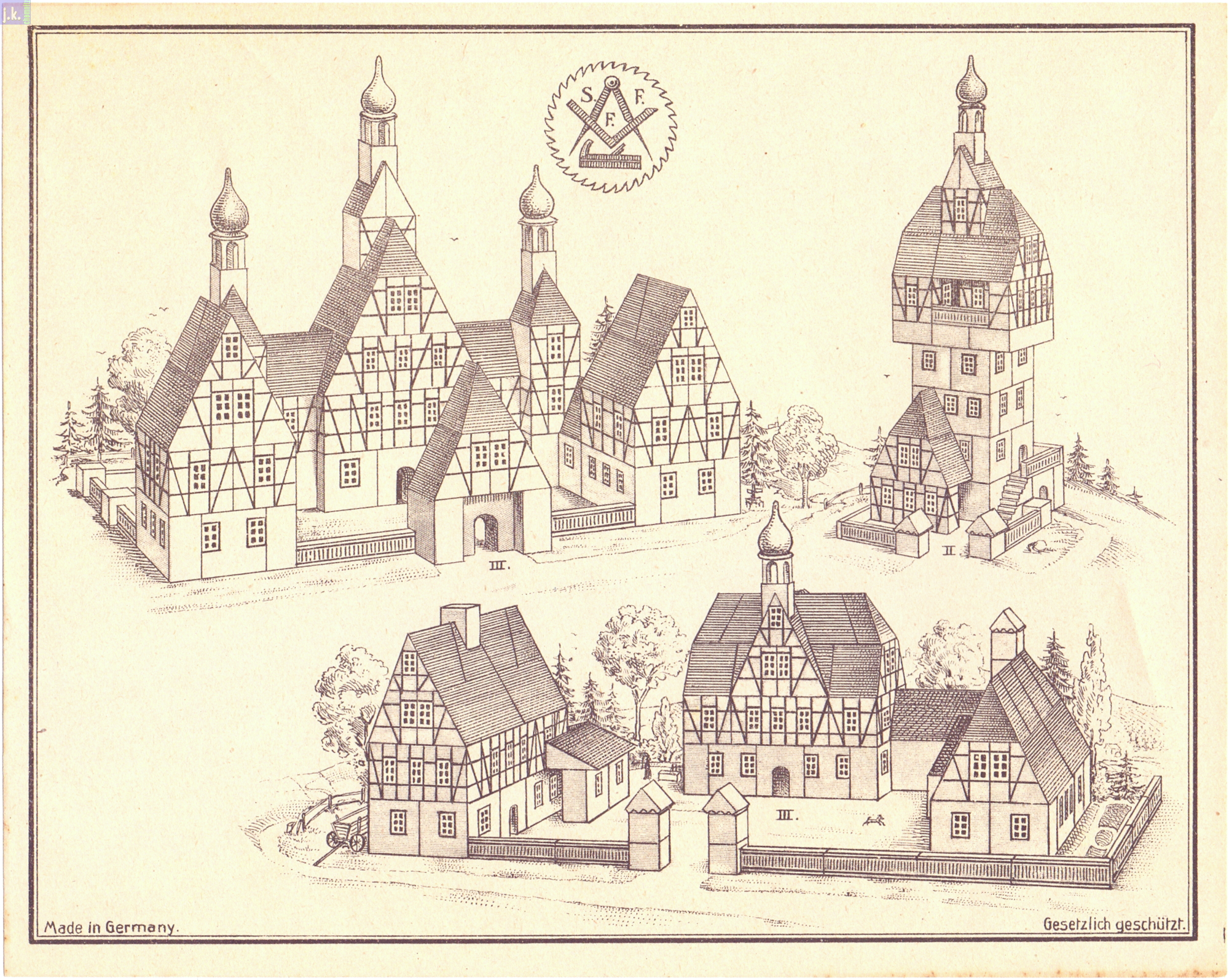 Bemerkungen Der größte Fachwerk-Baukasten, Nachkriegs-Katalog-Nr. 1327 (VK: 327, da gab es noch einen größeren, den 328). Auf vier Blättern ist für reichlich Bauvorlagen gesorgt (20 cm x 16 cm (Bild 5), 20 cm x 16 cm (Bild 6), 24 cm x 16 cm (Bild 7), 32 cm x 24 cm (Bild 8)). Sie dürften noch aus Vorkriegsbeständen stammen.
