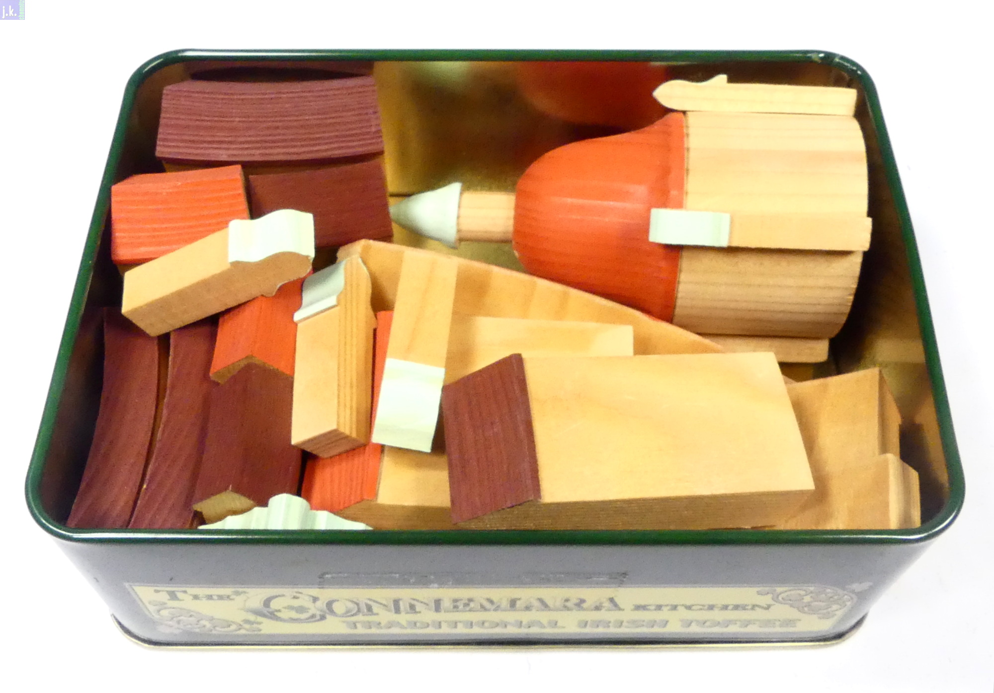Zustand: Unbespielt, vollständig. Die Verkaufstüte ist nicht mehr vorhanden. Stattdessen sind die 18 Teile jetzt in einer Bonbondose untergebracht.