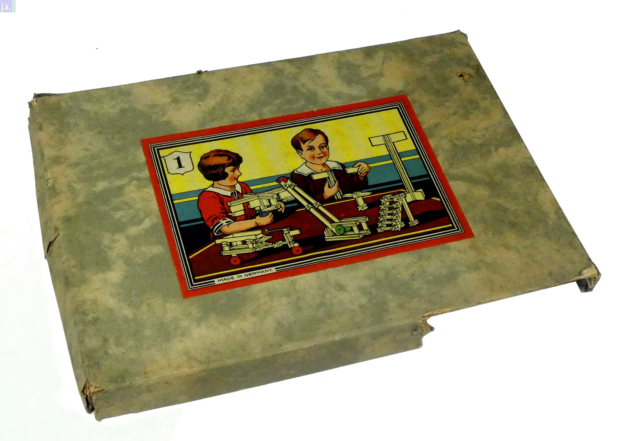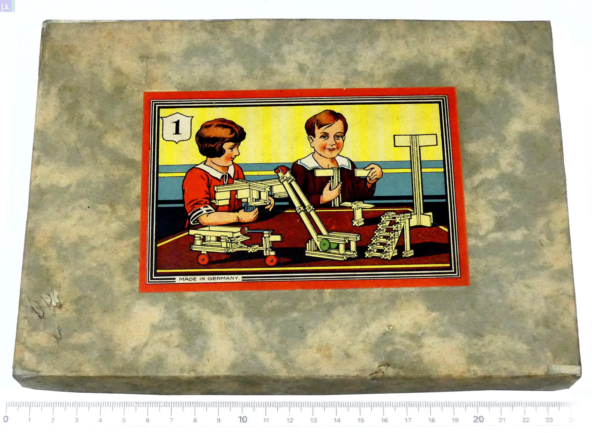 Bemerkungen Die kleinste Ausrüstung des Modell-Baukastens Serie 542 oder 542K (im Karton), und damit Vorgänger des Ecoba-Baukastens Serie 543. Dem Deckeletikett nach zu urteilen stammt er von vor 1930.