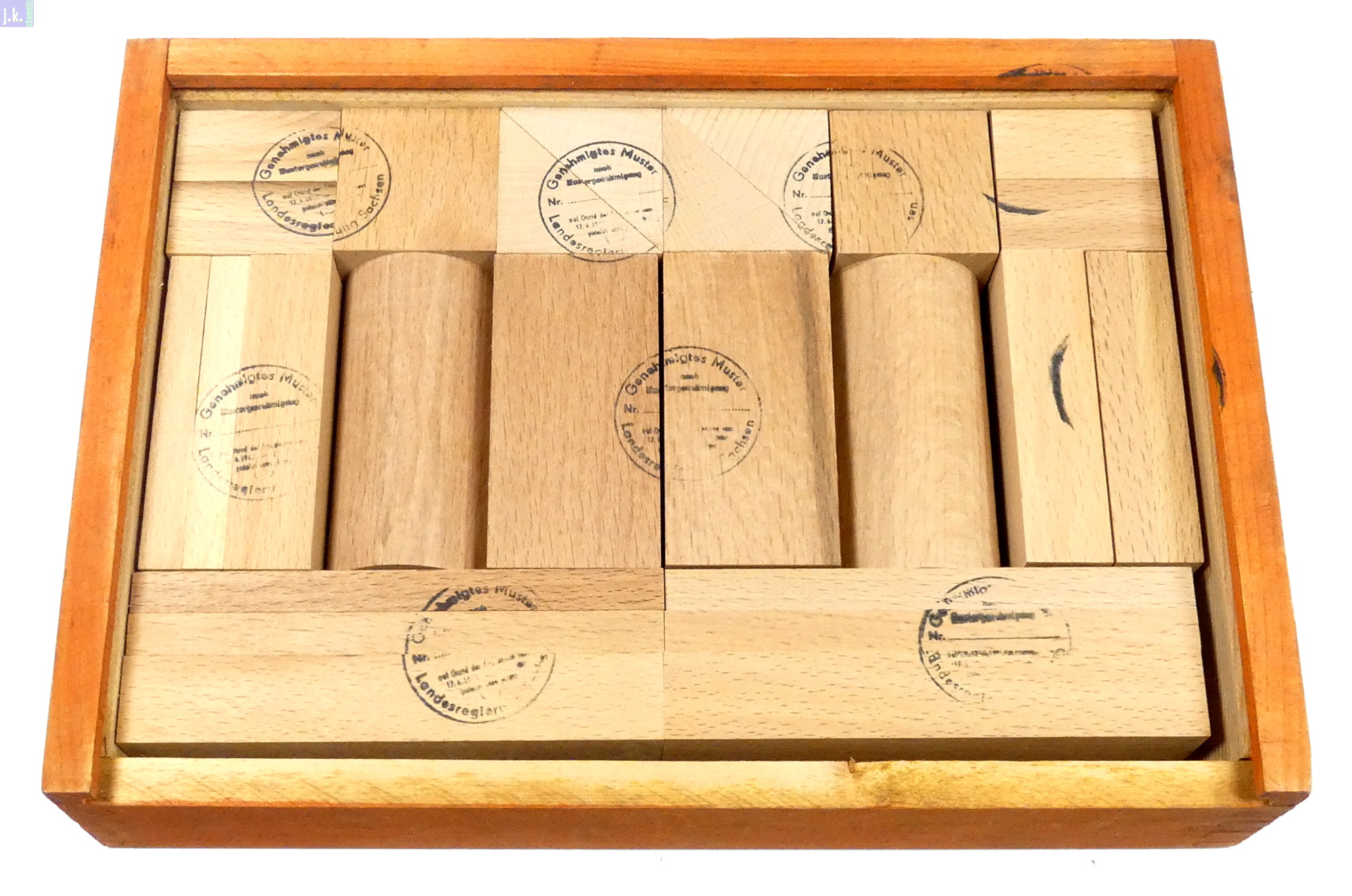 Bemerkungen Den Preislisten nach Kleinkind-Baukasten mit großformatigen Buchenholz-Bausteinen, die eigentlich farbig sein sollten - siehe Deckelbild.