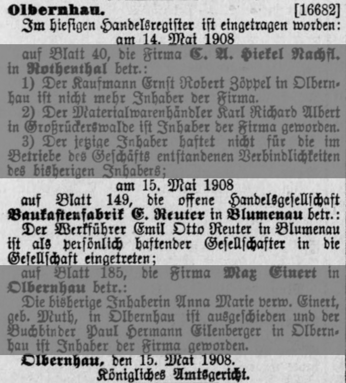 Eintrag im Deutschen Reichsanzeiger vom 2. 5.1906