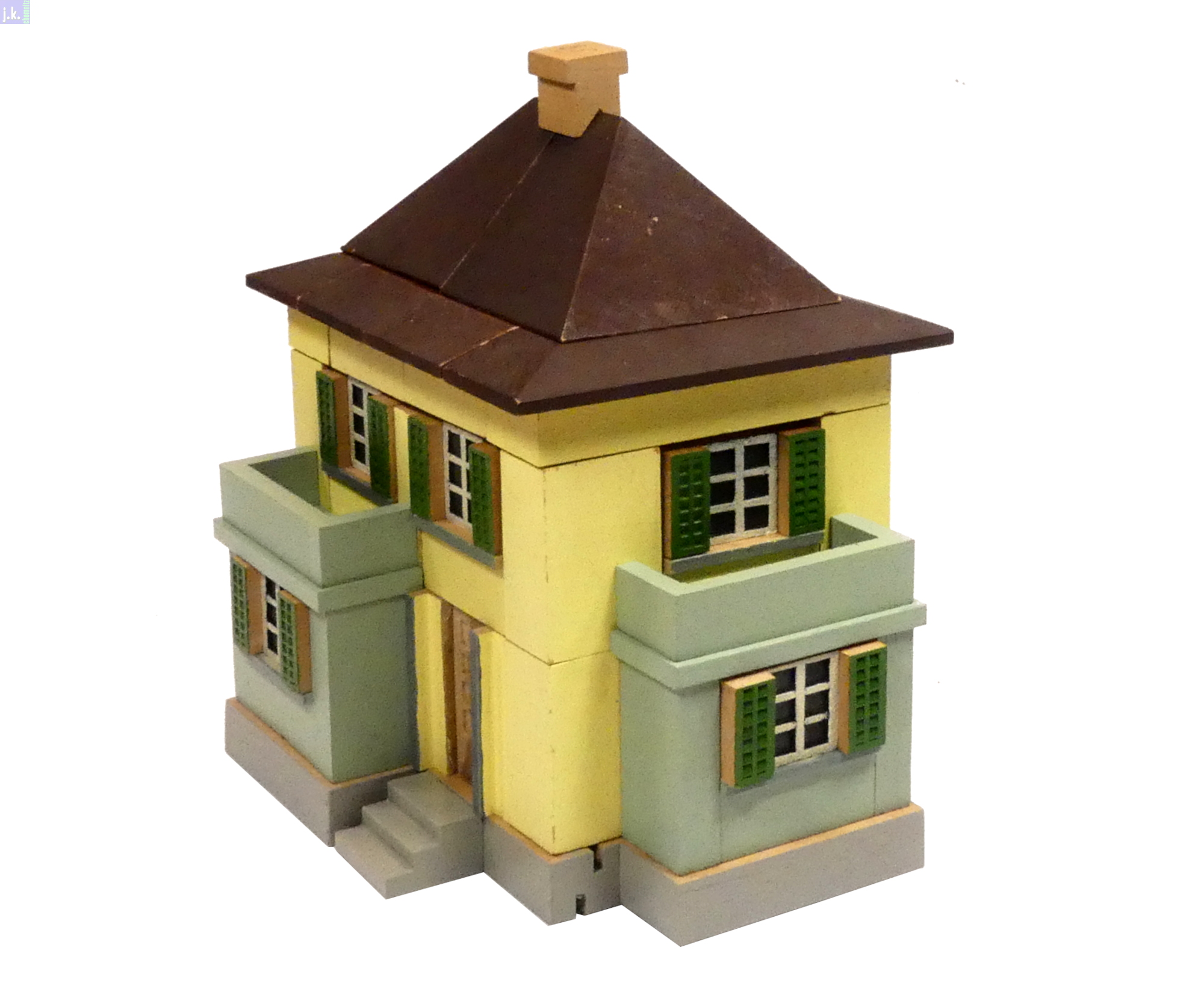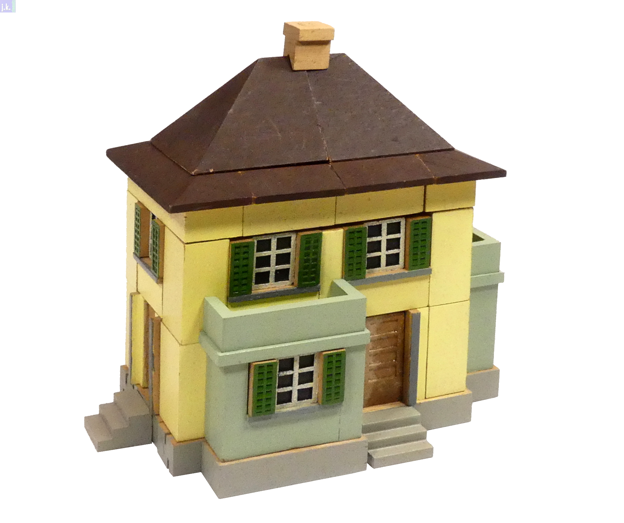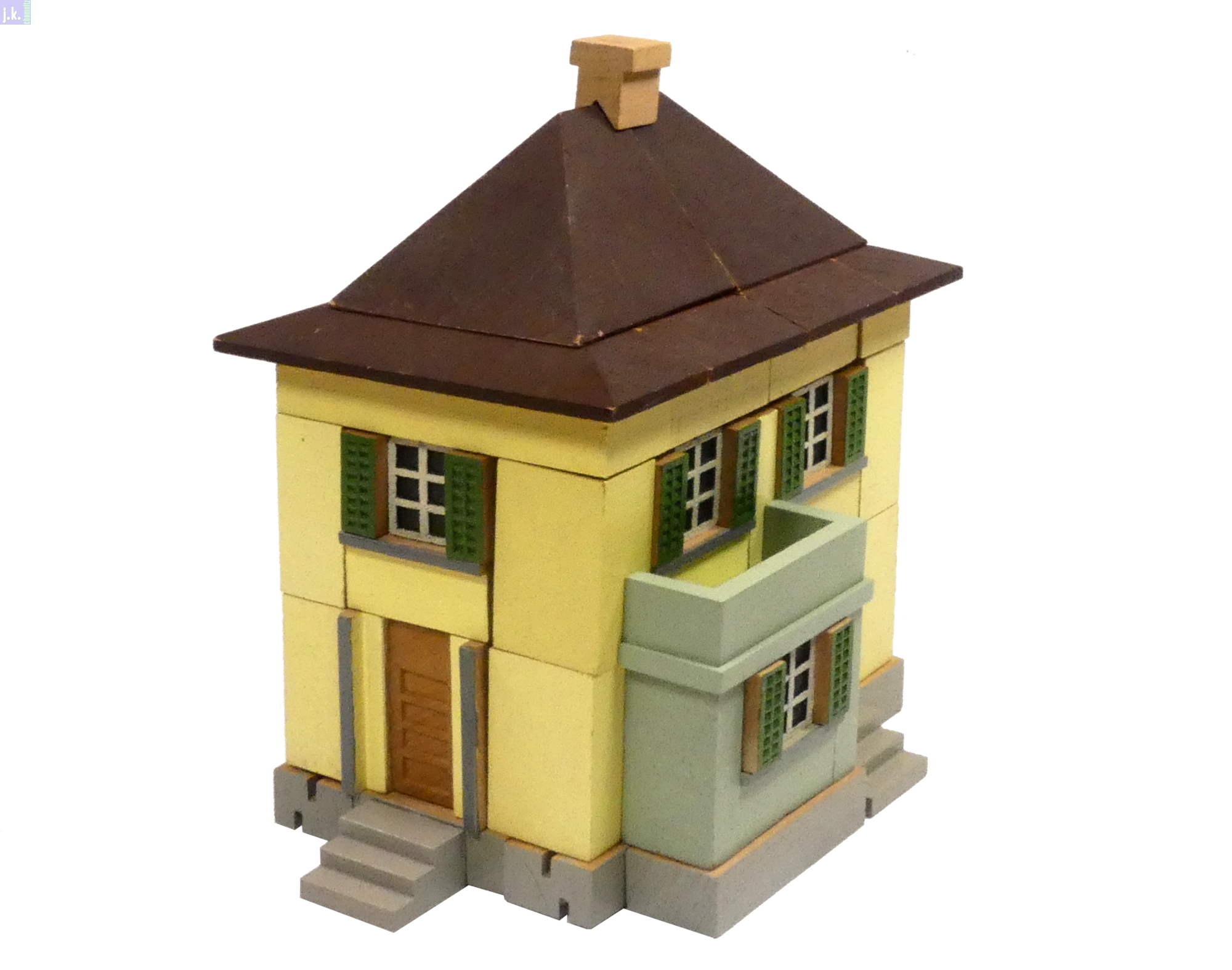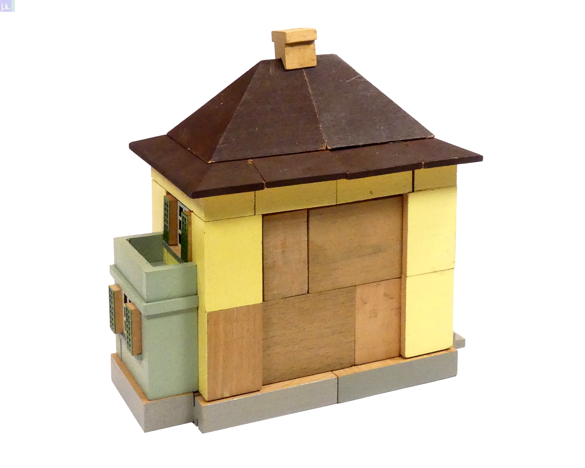 Bemerkungen Modell nach einer Vorlage aus dem Schweizer Architekturbaukastens 'Der Architekt 4.' aus farbigen Buchenholzbausteinen.