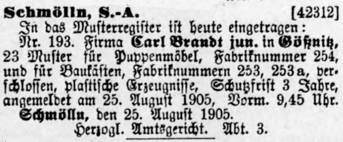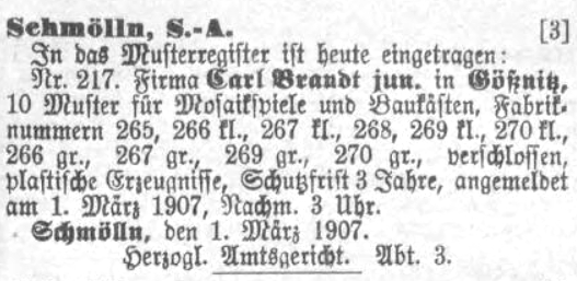 Technologie bearbeitetes Spielzeug aus (siehe u. a. den 'Perlmännchen'-Kasten) und erregte damit bei den großen Blumenauer Baukastenherstellern große Aufmerksamkeit .