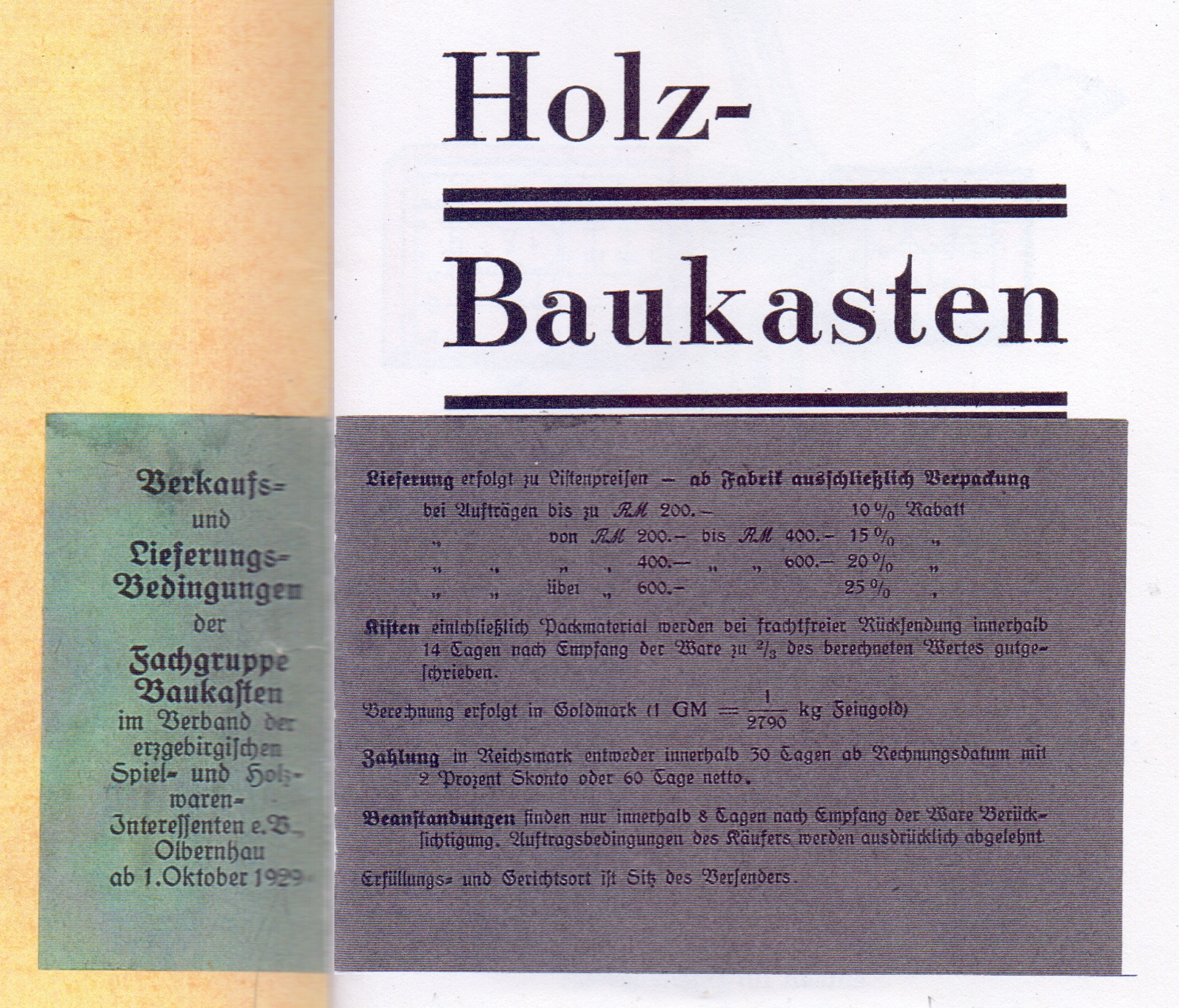 eingeklebtes Blatt mit Lieferbedingungen vom 1.10.29 (Kopie)