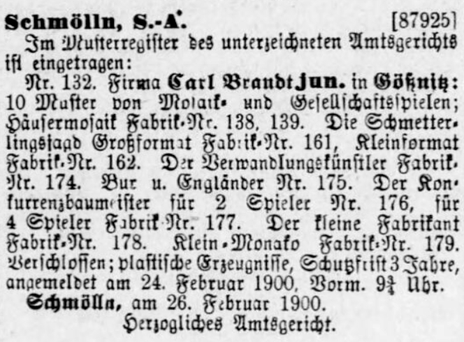 Eintrag im Deutschen Reichsanzeiger vom 2. 5.1906