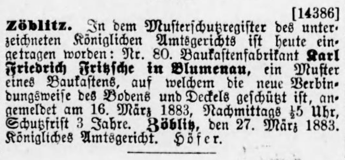 Technologie bearbeitetes Spielzeug aus (siehe u. a. den 'Perlmännchen'-Kasten) und erregte damit bei den großen Blumenauer Baukastenherstellern große Aufmerksamkeit .