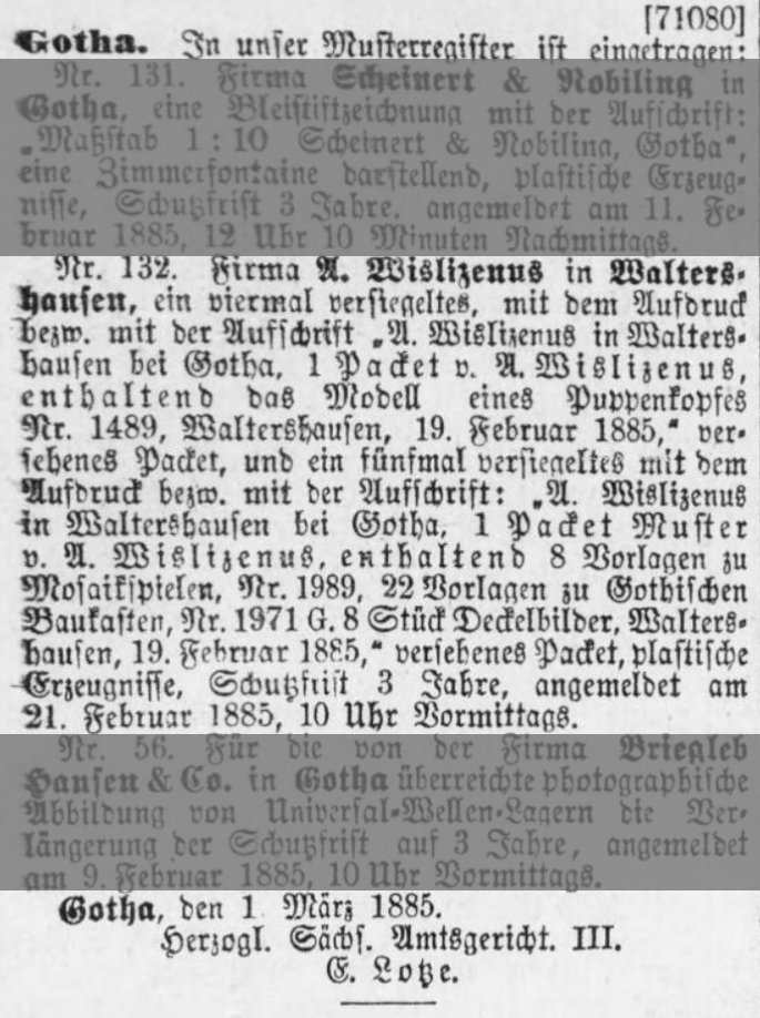 wurden von E. Reuter und wenig später von L. Engel die ersten Baukästen mit trommelpolierten Bausteinen auf den Markt gebracht. Die Firmen waren damit nahezu konkurrenzlos auf dem Weltmarkt und erzielten sehr gute Umsätze.