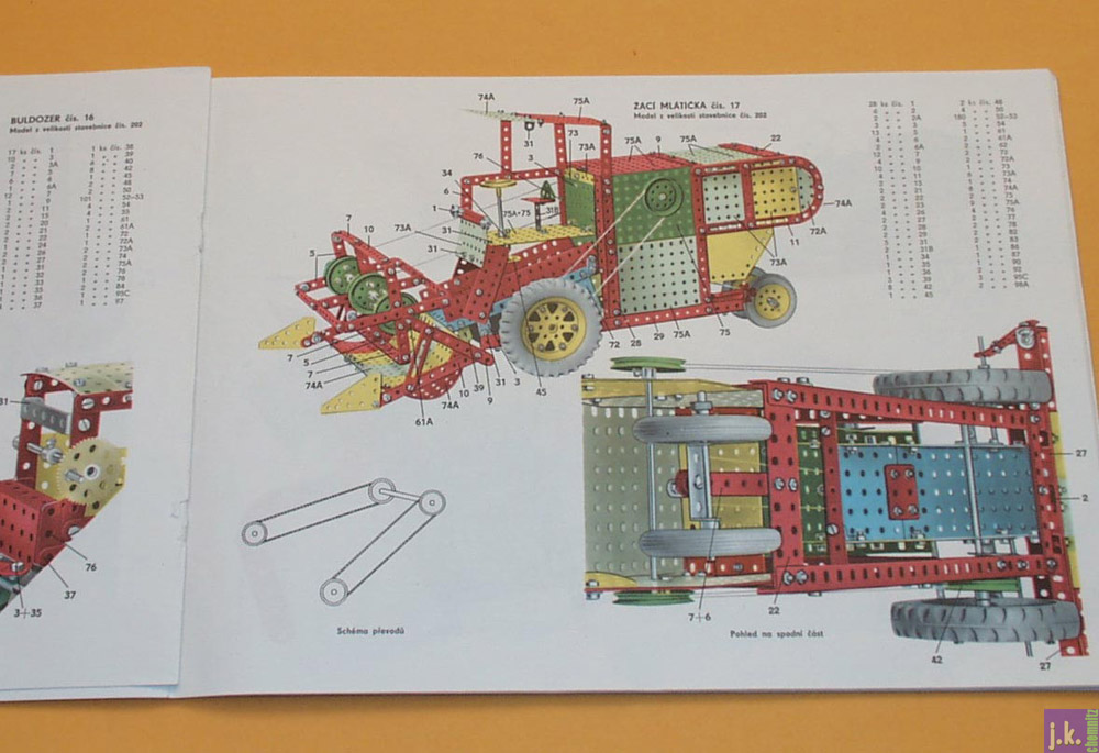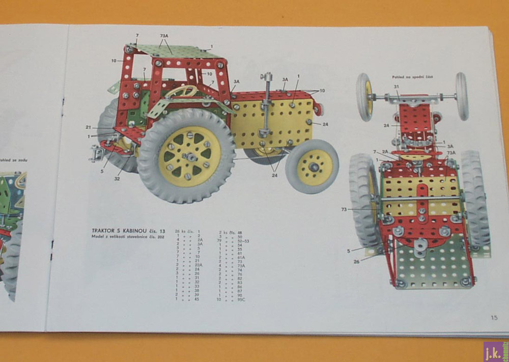 Das 34-seitige, großformatige Anleitungsheft zeigt einige recht anspruchsvolle und gut proportionierte Vorlagen. Auf der letzten Umschlagseite befinden sich Inhaltsverzeichnisse für die drei Ausrüstungen 201, 201A und 202 (das gesamte damalige Sortiment?).