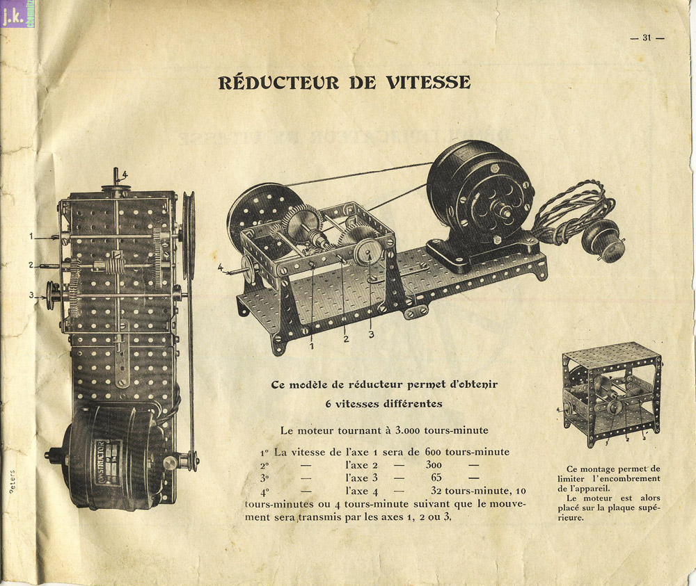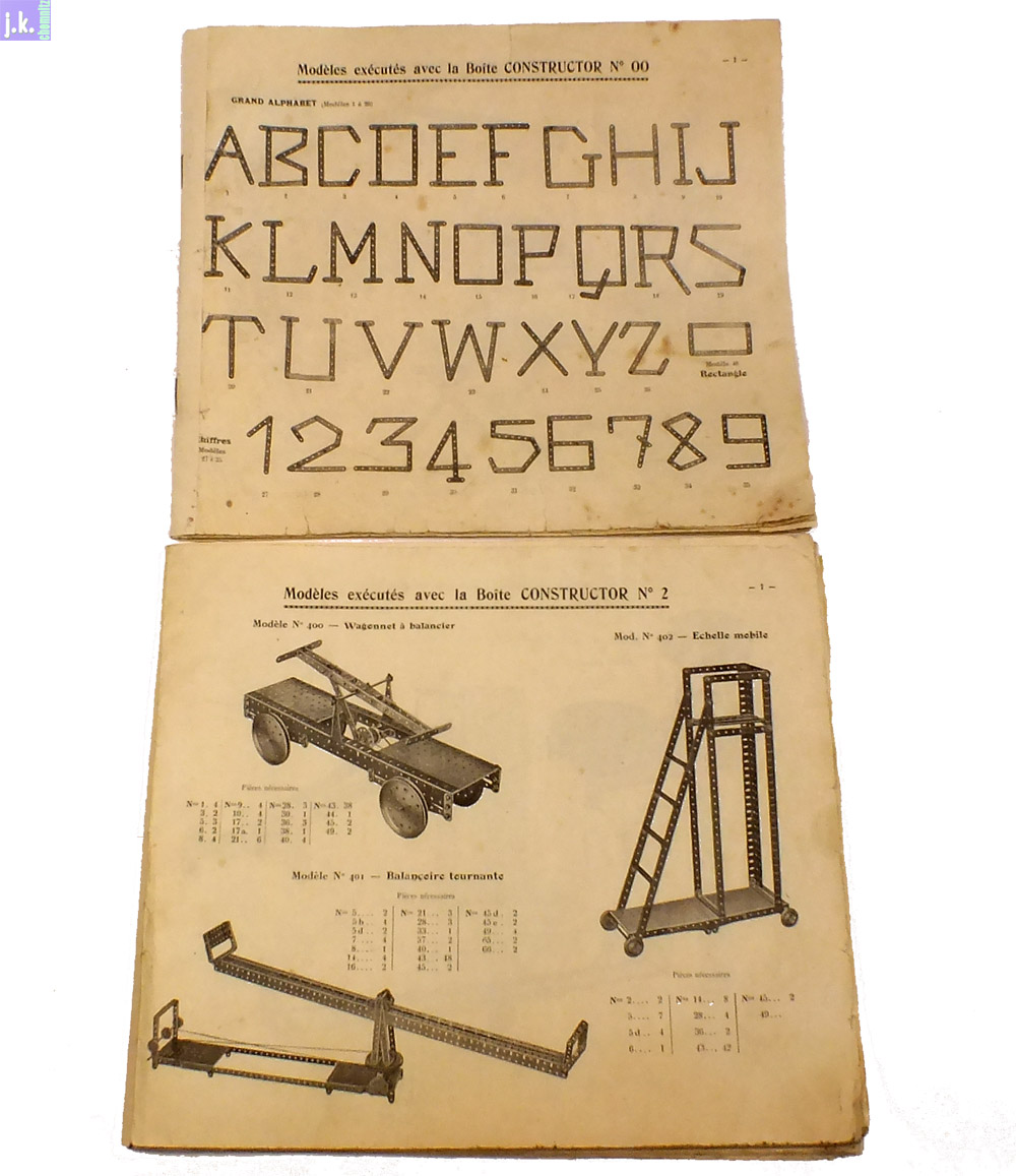 Zum Kasten gehören zwei Vorlagenhefte: das für die Ausrüstungen 00 bis 1 mit 32 Seiten und eines für die Ausrüstungen 2 bis 4 mit 58 Seiten (jeweils 25 cm x 21 cm). Auf jeweils der letzten Seite wird für den Motor des Systems im Zusammenbau mit einem Getriebe geworben (Bild 5).