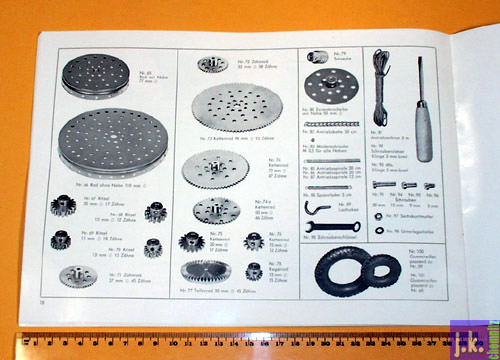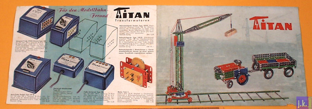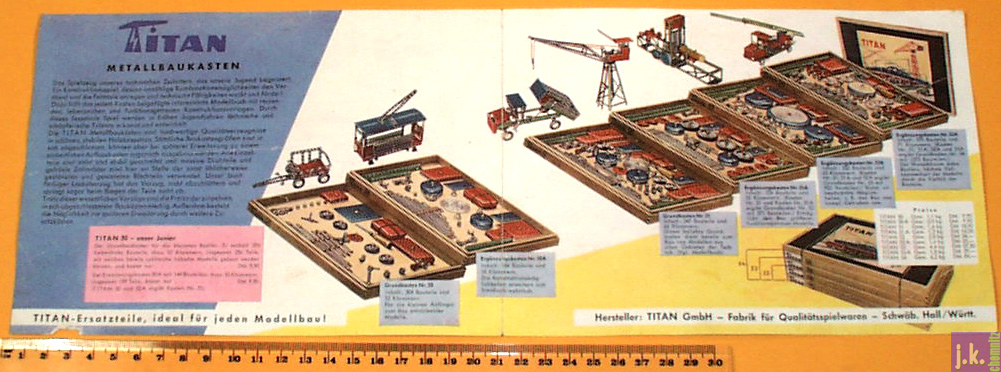 Das gesamte Baukastensortiment ist auf einen Werbefaltblatt dargestellt, das die Bilder 2 und 3 zeigen (s. auch Exponat MW-TI01).
