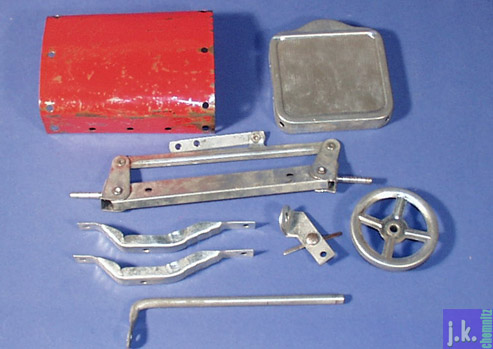 Der kräftige 110 V-Motor A47 mit Vorgelege, letzteres offenbar ein tüchtiger 'Zähnebrecher', wurde ab 1950 eingesetzt. Bild 6 Viele der Vorlagen machen genauso einen kärglichen Eindruck wie dieses Karussell. Bild 7 Amerikanisch: Riesige abgebogene Platten ca. 32 cm x 8 cm.
