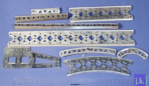 Charakteristisch für Erector: Gitterteile in verschiedenen Ausführungen aus Aluminium, die aber nur sehr spezielle Verbindungen zulassen. Bild 3