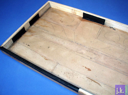 Der Karton war an vielen Stellen mit Lenkerband zusammengeklebt worden. Er wurde mit dem vorhandenen Material vollkommen neu aufgebaut. Das Deckelbild war nur fragmentarisch erhalten. Vom Anleitungsbuch fehlten der vordere Deckel und die ersten 10 Seiten. Es war zudem stark zerfleddert. Weitere Bilder der Wiederherstellung dieses Kartons sind im Menüpunkt Wiederstellung zu finden.